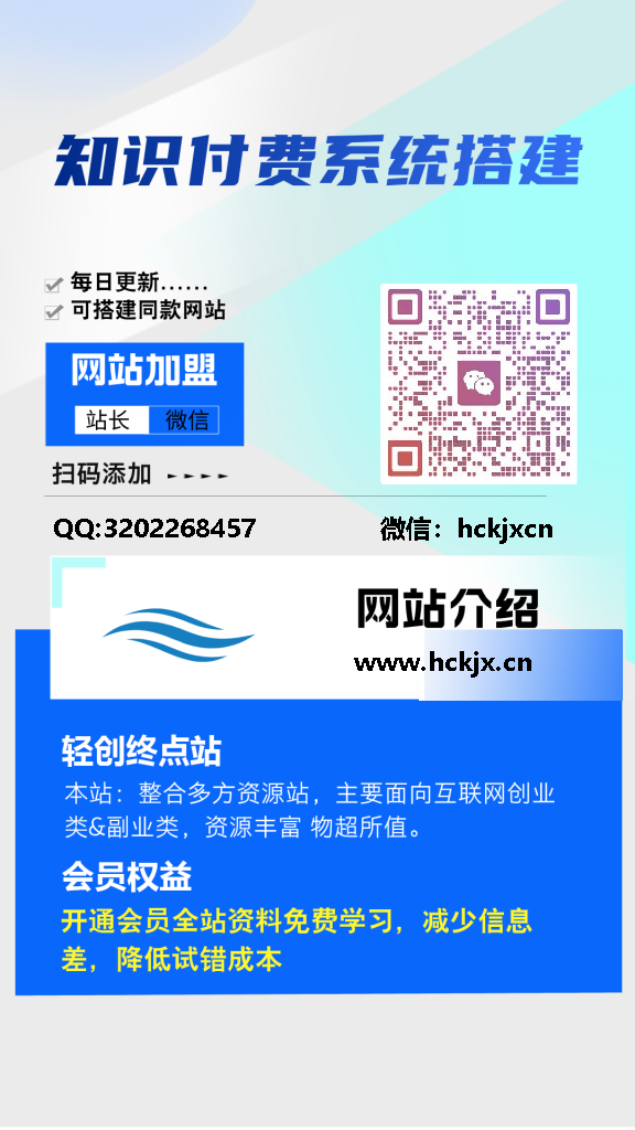 网创资源&实战项目&365天稳定更新 站长微信:hckjxcn